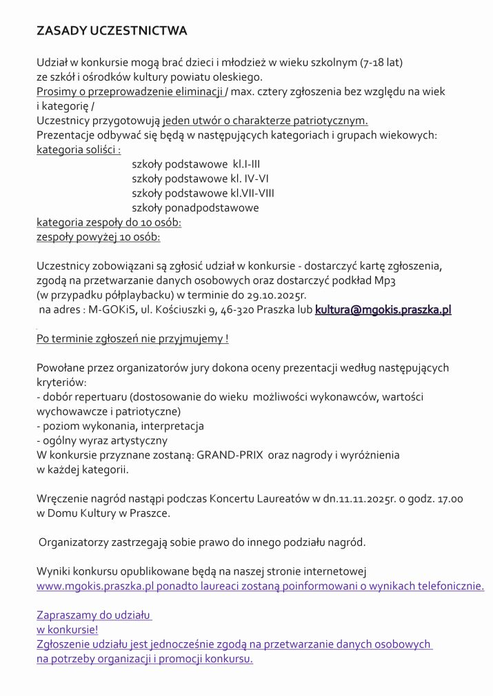 wyniki Festiwalu Pieśni Patriotycznej o Puchar Starosty 2025